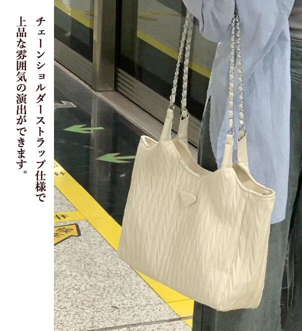 レディース チェーン ショルダーバッグ トートバッグ 大容量 軽量 シンプル エンボス風加工