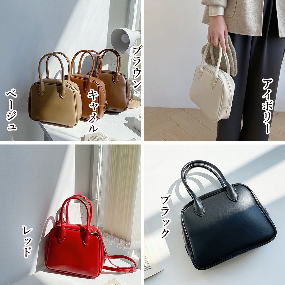 2wayスクエアボストン 斜め掛け鞄 レトロ 手提げかばん 通勤 肩掛けバッグ フェイクレザー 軽量 20代30代40代