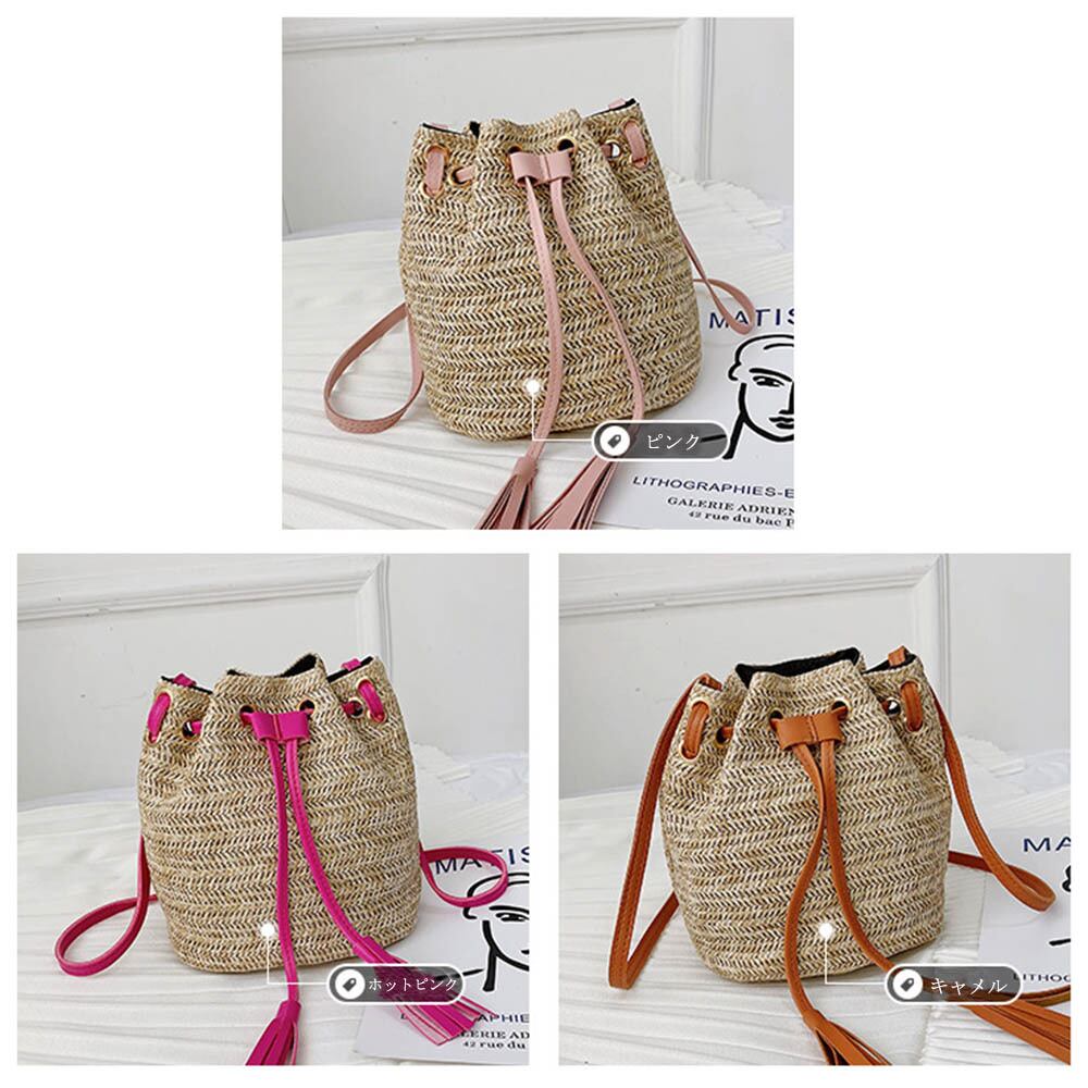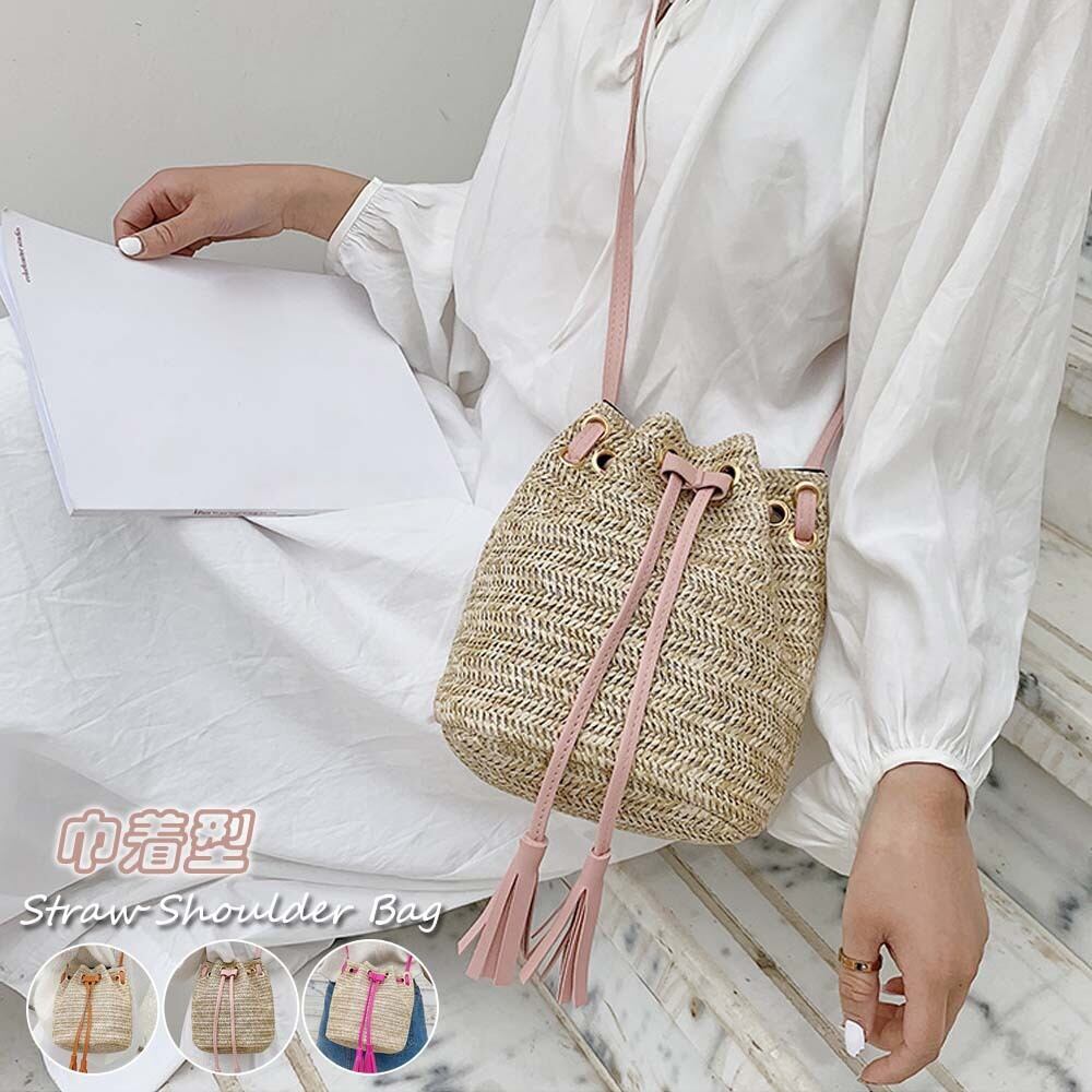 かごバッグ ストローバッグ レディース 巾着 ショルダーバッグ 斜めがけバッグ