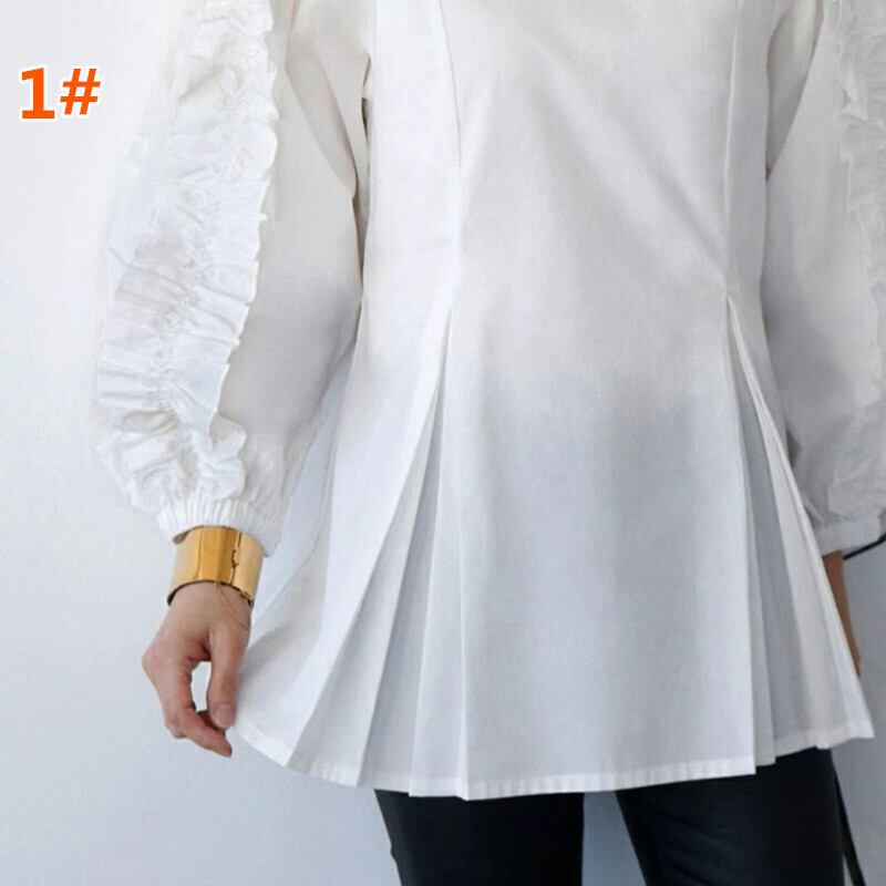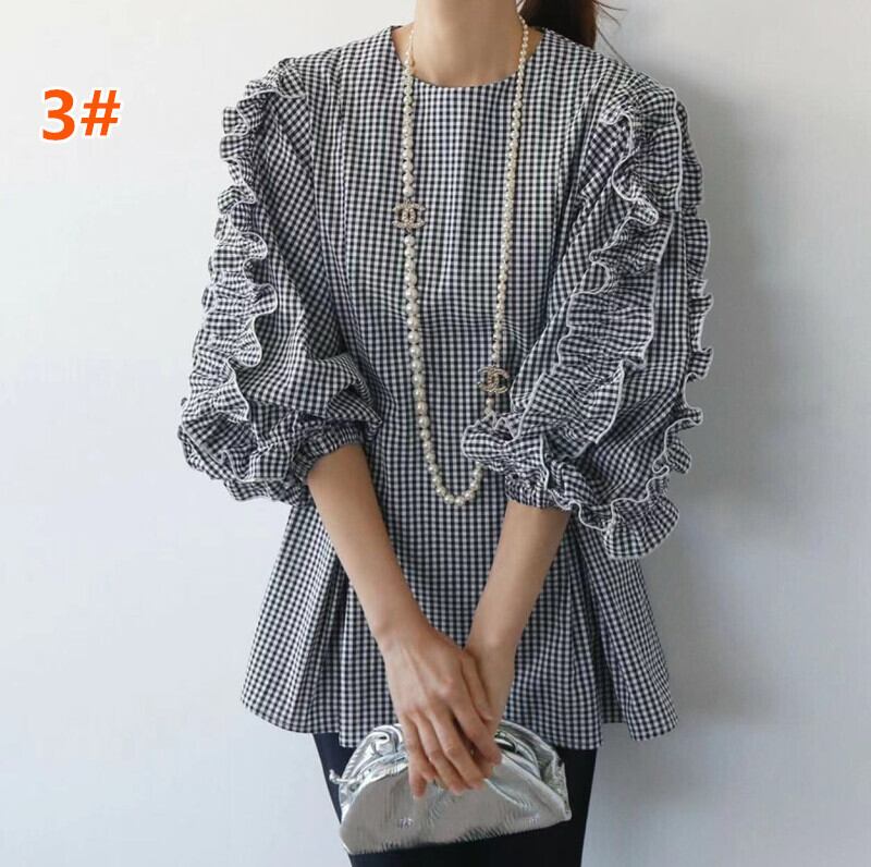 ブラウス 韓国風 レディーストップス 人気シャツ ラウンドネック ランタンスリープ